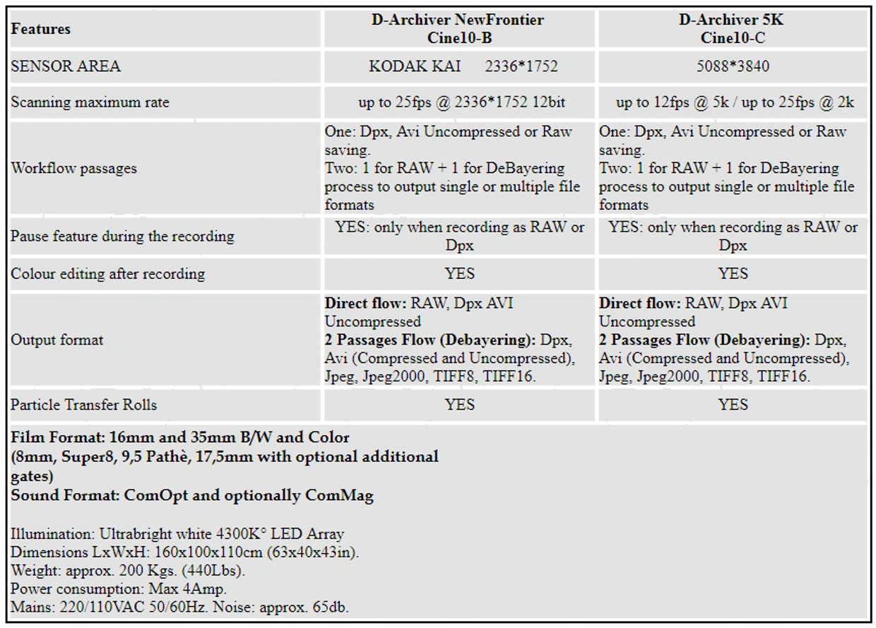 Suitable for all 35mm and 16mm film formats and optionally for 9,5 Pathè, 8mm, Super8 and 17,5mm.